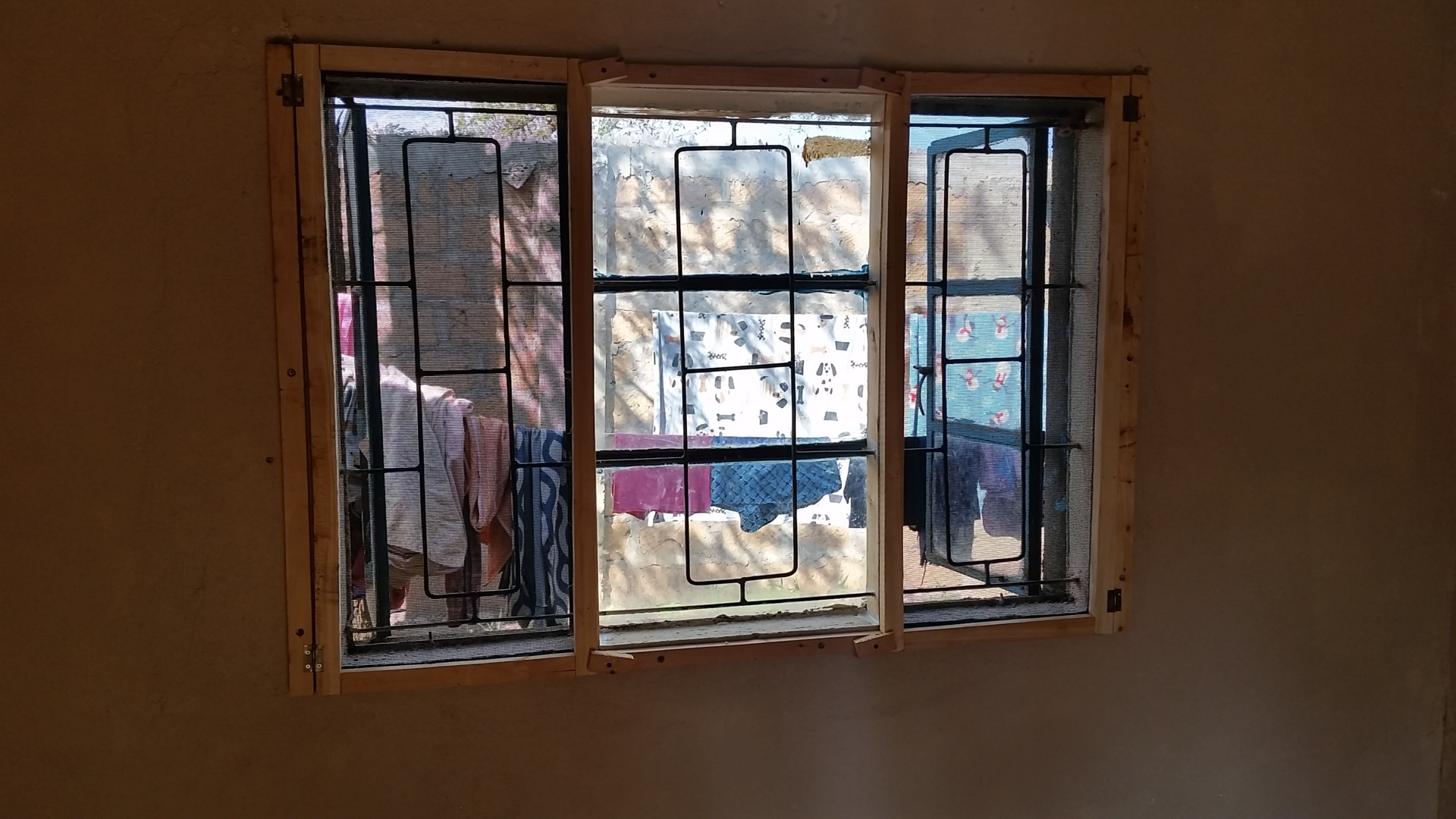We went to Maru, the nearest city. I think it was around an hour away. We bought some screen and 1 X 6’s to cut down for the frames. I had a battery powered skill saw. I would cut the 1 X 6’s into 1.75” strips then cut them down to the length that I needed for the windows. I would drill holes in the 1” X 1.75” strips to screw them together then cut the screen to match the frames and staple the screens to the frame. I had some piano hinge that I’d cut down file down the sharp edges and drill holes in them so I could screw them to the frame and mount the screens to the walls.